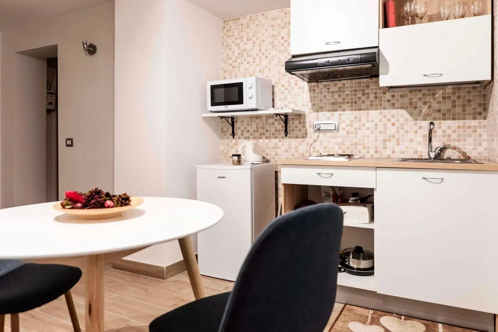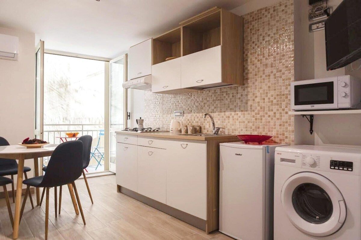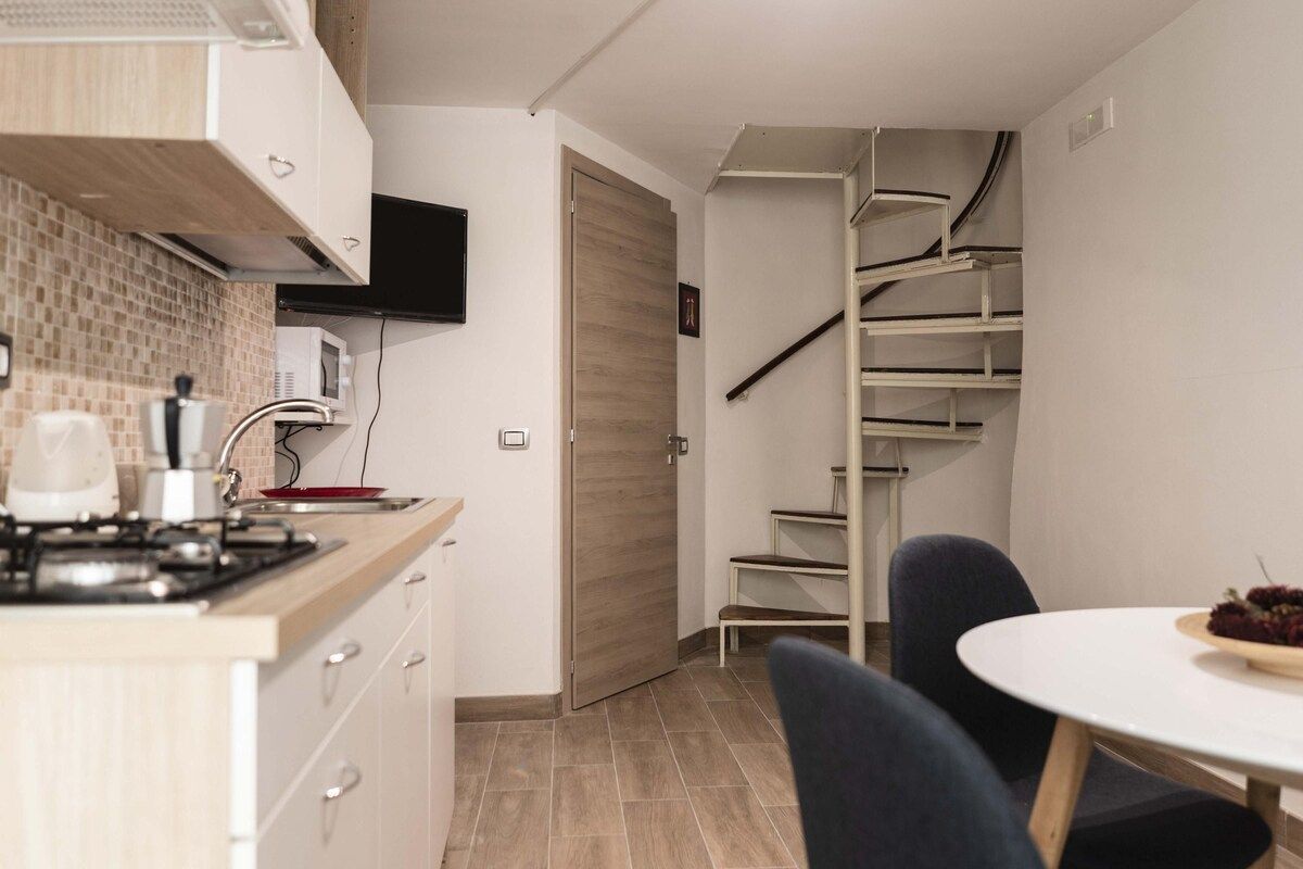 Sia il monolocale che il trilocale sono dotati una cucina con sala da pranzo attrezzati con Frigorifero, Freezer, Forno a microonde, Piano cottura a induzione, Macchina per il caffè a cialde, servizi privati ed aria condizionata.